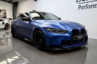 We are pleased to present this stunning BMW M4 Comp X Drive finished in Frozen Portimao Blue Metallic with contrasting Black and Carbon Interior. This example also benefits from a full body Xpel Paint Protection Film install and a Maxton Design exterior styling kit finished in High Gloss Black. Having the Ultimate pack means this car comes loaded with almost every option possible including: